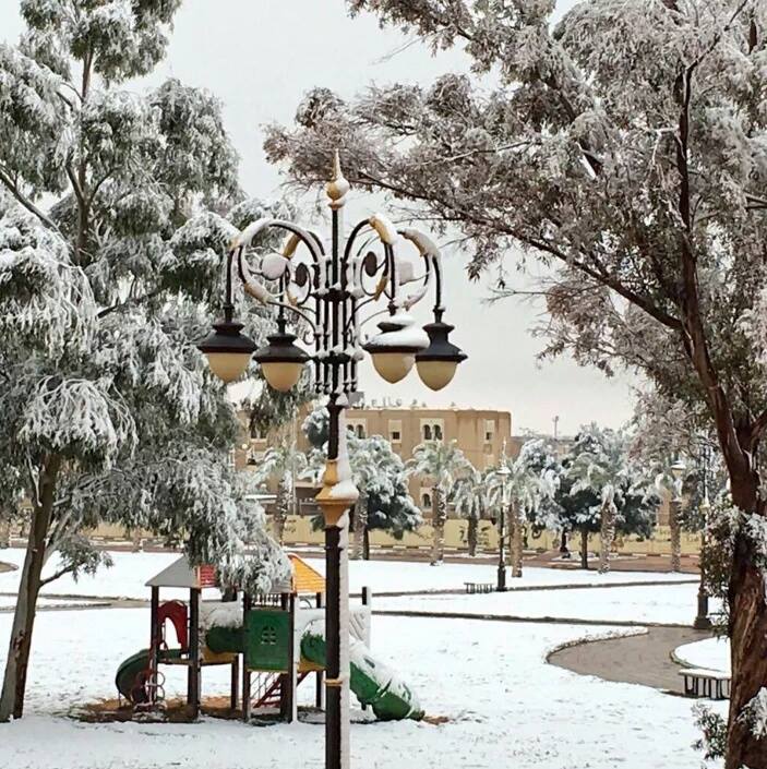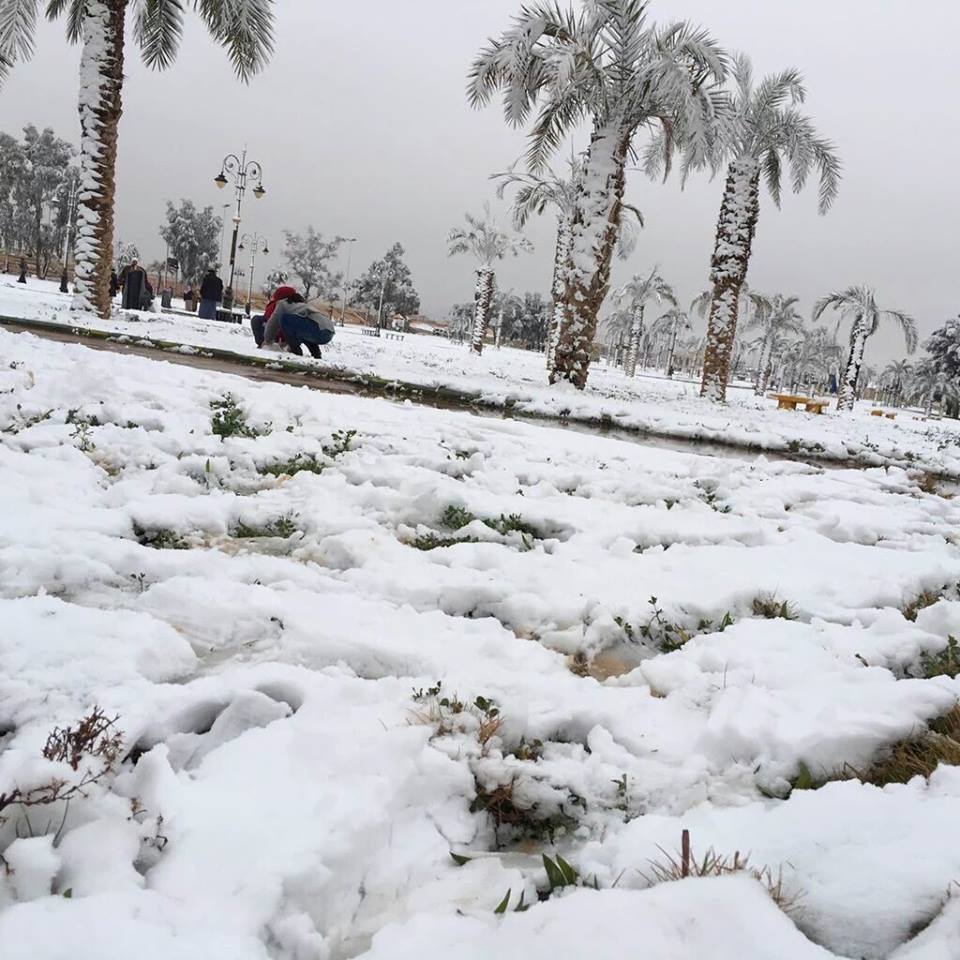 Крайне аномальный снег обрушился на город Рафха, Саудовская Аравия 28 января 2016.