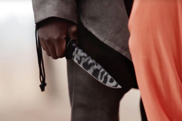 Жуткие кадры заканчиваются тем, что ребёнок делает глубокий вдох, подходит ближе к своему заложнику, стоящему на коленях, и, крепко зажмурившись, перерезает ему горло.