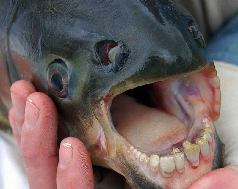 Обитающая в водоемах Папуа Новой Гвинеи рыба семейства пираний отличается зубами, странно похожими на человеческие. Прожорлива и чрезвычайно опасна!