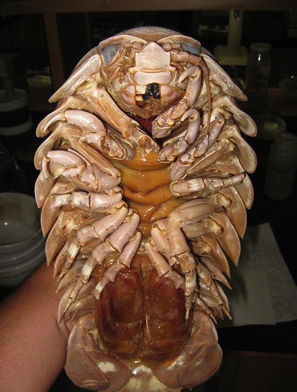 Глубоководный рак изопода – самый большой в семействе изопод, Чудовичшые размеры объясняются отсутствием врагов на глубине в ареале распространения этих «морских тараканов».