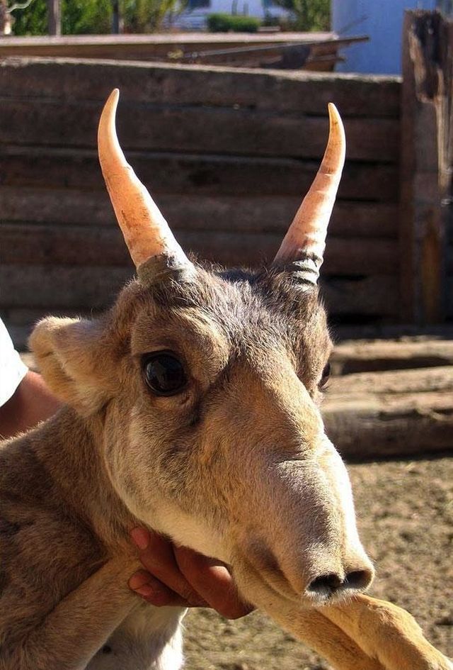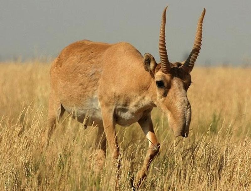 Степная антилопа сайга имеет широкий ареал распространения. От других антилоп отличается чрезмерно большим и подвижным носом.