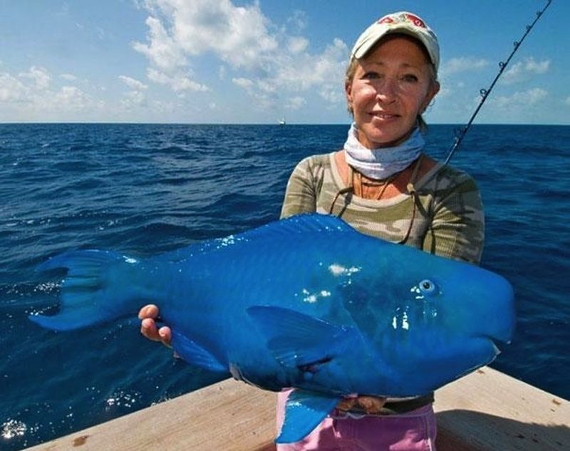 Обитает в атлантических водах Бразилии, Бермуских и Багамских островов и 80% жизни проводит в поисках пищи. Самые крупные особи достигают 120 сантиметров в длину; только эта разновидность рыб-попугаев сохраняет насыщенно-синюю окраску и во взрослом возрасте.