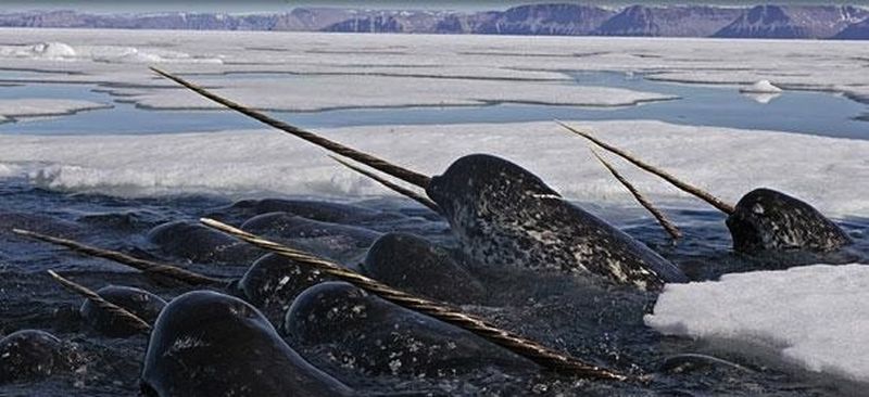 Кит-единорог, обитающий в водах Арктики, на протяжении тысячи лет служит объектом промысла инуитов за свое мясо и кость бивня.