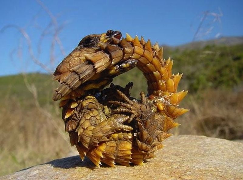 Австралийский «колючий дьявол» имеет камуфляжную окраску и шипы на голове, служащие «ложной головой» и защищающие от нападения хищников.