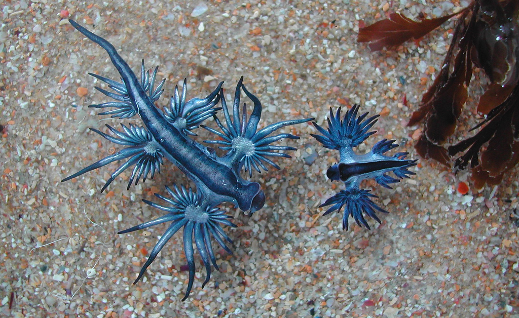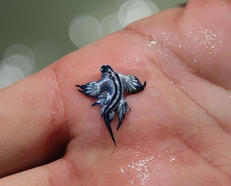 Это создание также известно под названием «голубой дракон» и является подвидом брюхоногих моллюсков. Его можно найти в тёплых водах океанов, он плавает под плёнкой поверхностного натяжения благодаря брюшному мешочку, наполненному воздухом.