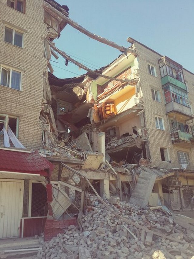 — Под завалами рухнувшего дома погибла 40-летняя женщина, два человека ранены на улице Мира. Там разрушен подъезд от первого до пятого этажа. В местной школе выбиты стекла и двери. В детском саду снарядом тоже выбило стекла. Город взят в кольцо. Люди не могут эвакуироваться из поселка. Они сидят по домам и подвалам, очень страшно, — сообщил источник в больнице.