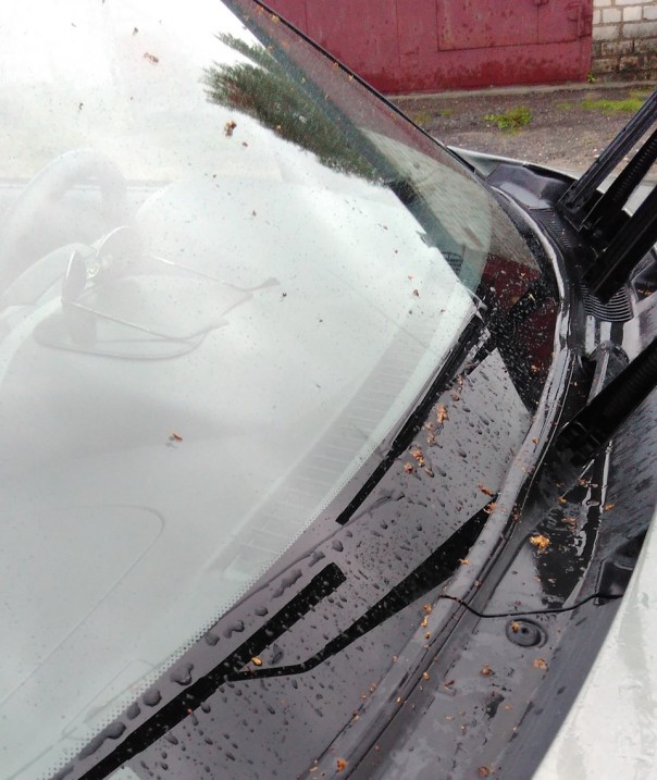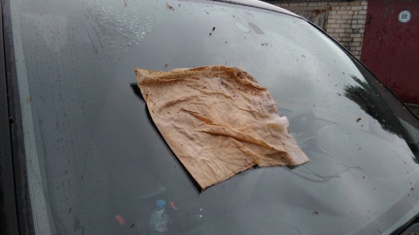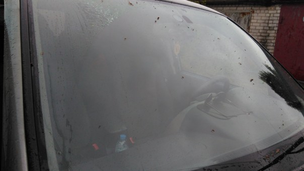 После всех этих действий убираем табачную крошку со стекла и кузова машины и удивляемся чистоте лобового стекла.