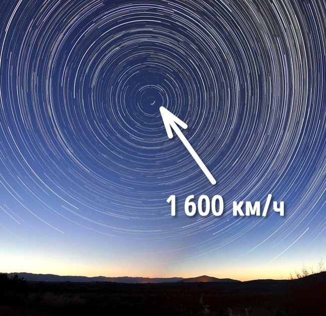 Земля вращается со скоростью 1 600 км/ч. Также она крутится вокруг Солнца с еще большей скоростью — 108 тыс. км/ч. В действительности мы можем ощущать движение только в том случае, если меняется его скорость. Из-за постоянства скорости вращения Земли и силы притяжения мы совсем его не чувствуем.