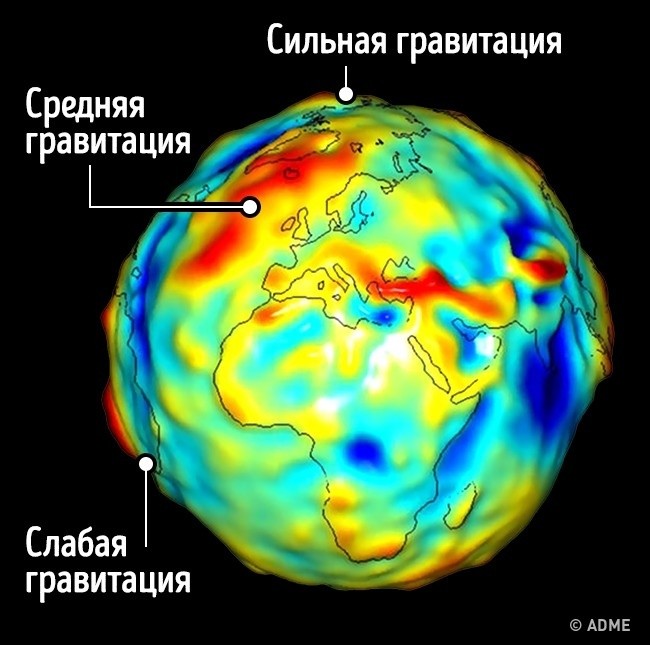 Из-за того что наша планета не является идеальной сферой, на Земле есть точки с низкой и высокой силой притяжения. Одна из таких гравитационных аномалий — Гудзонов залив в Канаде. Ученые выяснили, что низкая гравитация в этом месте связана с низкой плотностью Земли из-за быстрого таяния ледников.