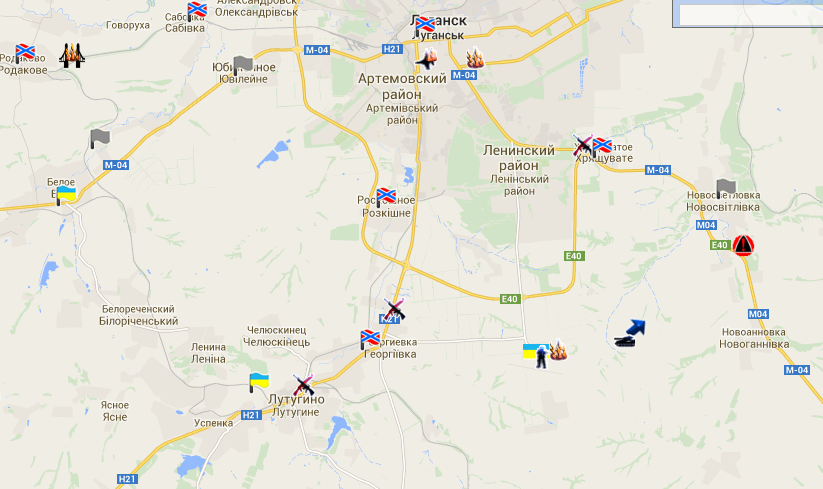 Ополченцы сообщают, что украинские силовики силами батальонной тактической группы при поддержке 24 танков частично овладели Малониколаевкой и взяли под контроль участок дороги между населенными пунктами Красный Луч и Лутугино.