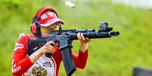 Российская спортсменка Алёна Карелина (IPSC, открытый класс) на Чемпионате мира по стрельбе из ружья, 2018 год