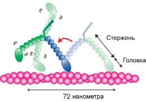 Многие «молекулярные моторы», в том числе миозин V, используют принцип шагающего движения. Они передвигаются дискретными шажками примерно одинаковой длины, причем впереди оказывается попеременно то одна, то другая из двух «ног» молекулы. Однако многие детали этого процесса остаются неясными.
