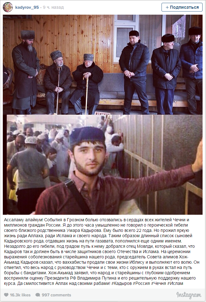 Сегодня вечером я поручил правоохранительным органам и спецподразделениям ЧР незамедлительно возбудить уголовное дело против депутатов Украины Юрия Берёзы, Андрея Левуса и Игоря Мосийчука. Они публично поддержали террористов, причастных к гибели в Грозном 14 сотрудников полиции. Так называемые депутаты высказались за оказание содействия подобным бандитским вылазкам.