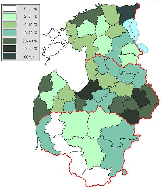 Вот карта , отражающая количество русского и русскоязычного населения, согласно последней переписи населения 2001 г в Прибалтике