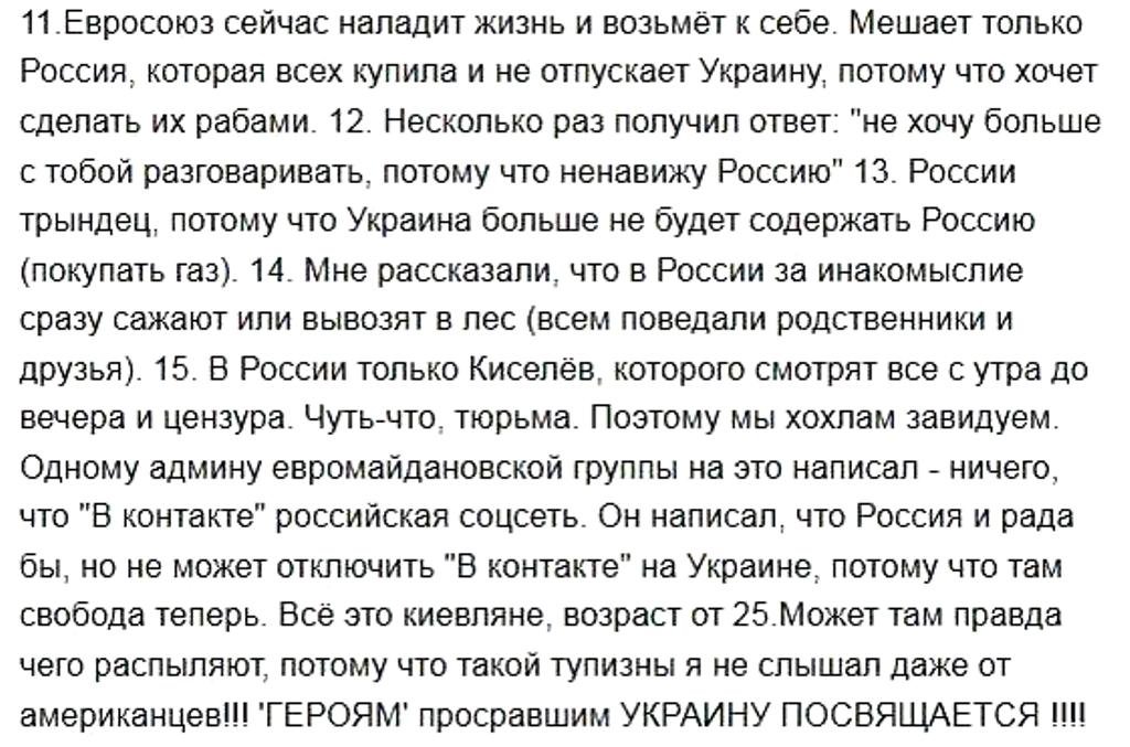 Причем обманули "кляти москали", бо "говорили нам не ходите в Европу, не ходите... знали клятые, что на зло им пойдем"