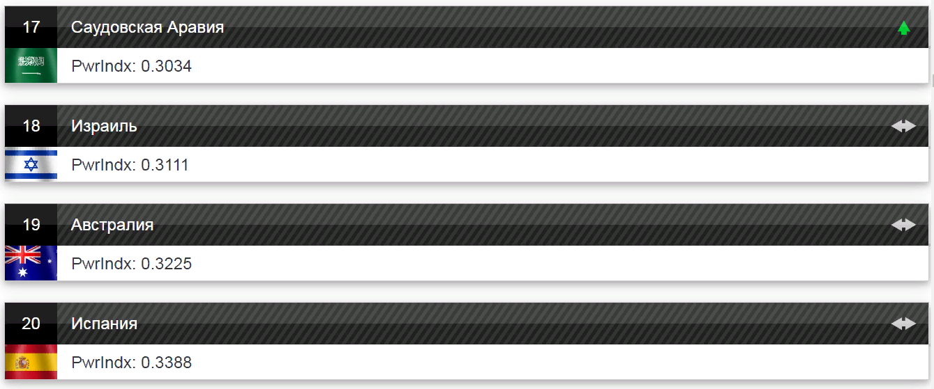 По итогам ежегодного обзора эксперты GFP поставили ВСУ на 27 место среди 138 стран. По итогам предыдущего обзора украинская армия занимала 29 место среди 137 стран.