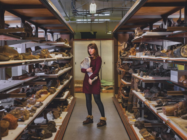 Музейные фонды не ограничиваются экспозициями: здесь хранят и изучают множество окаменелостей. В британском Музее естественной истории есть кости единственного известного на сегодня адратиклита – самого древнего из найденных стегозавров. В 2019 году группа ученых под руководством сотрудницы музея Сюзанны Мейдмент объявила адратиклита представителем нового отдельного рода. Основанием для этого, в частности, послужила кость передней конечности (на фото: именно ее держит в руках Мейдмент).