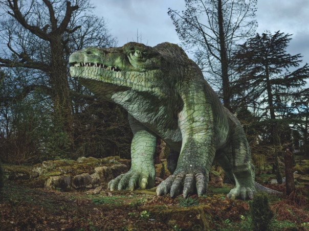 Бледно-зеленые скульптуры, возвышающиеся над мхами и папоротником, выглядят внушительно, даже величественно. Два игуанодона и вправду похожи на огромных игуан с наростами на мордах – сегодня ученые знают, что на самом деле это были шипы на больших пальцах.