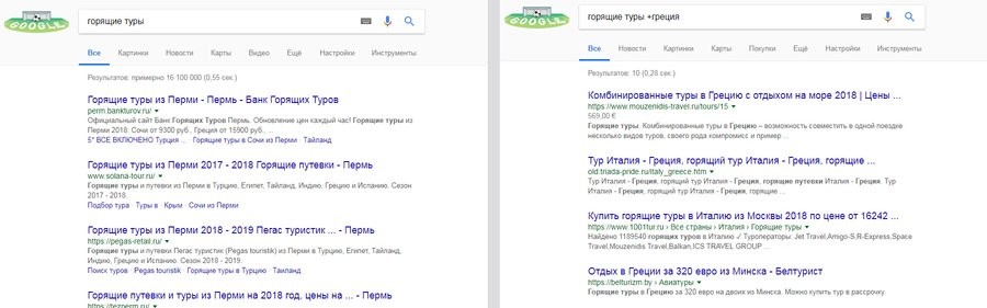 Например, горящие туры +греция.