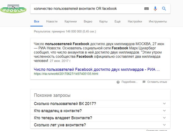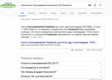 Например, запрос количество пользователей вконтакте OR facebook.
