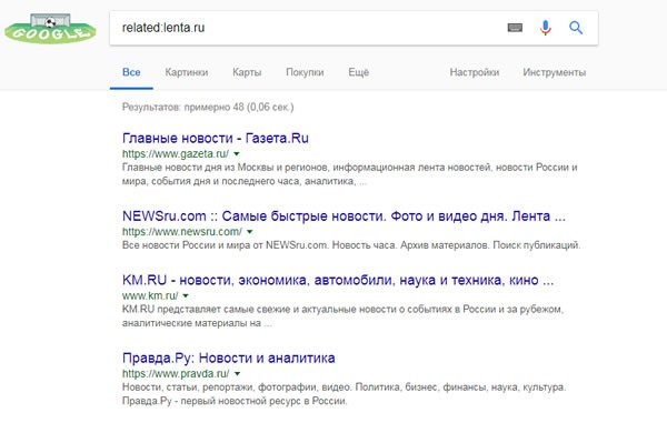 Например, запрос related:lenta.ru.