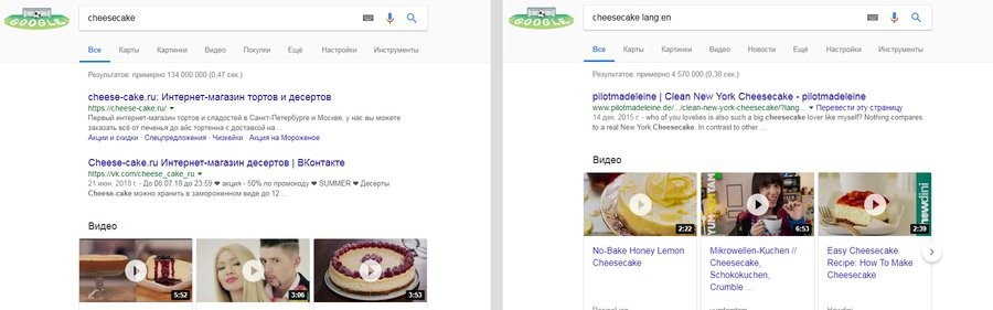 Например, запрос cheesecake lang:en.