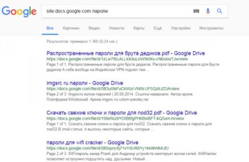 Например, запрос site:docs.google.com пароли.