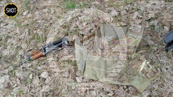 Телеграм-канал Shot опубликовал снимок с места обнаружения автомата и бронежилета. Отмечается, что они были изъяты у задержанного российскими пограничниками украинца. Источник