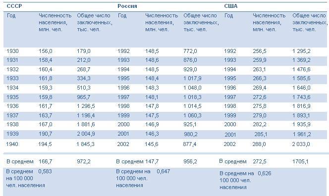 Таблица количества заключенных в сталинское время