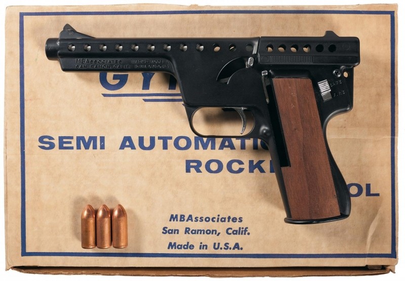 Тройку лидеров самого худшего оружия открывает американский пистолет уникальной конструкции. Gyrojet представлял собой ракетный пистолет, разработанный компанией MB Associates в 60-х годах. Каждая пуля этого пистолета обладала собственным ракетным двигателем. Это заметно снижало шум выстрела, а на дальности 50-60 метров обеспечивало большую энергию, чем у пули, выпущенной из пистолета Кольт М1911.