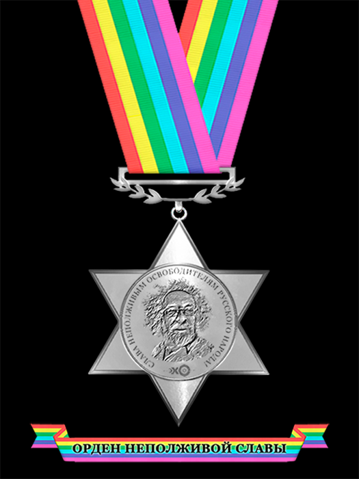 Орден будет носиться на настоящей гей-ленточке, - как символе торжества истинных демократических общечеловеческих ценностей.