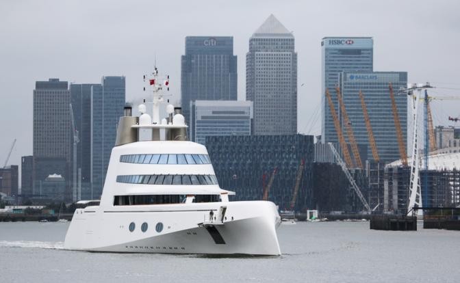 Яхта «А» российского миллиардера Андрея Мельниченко в порту Лондона (Фото: ZUMA/ ТАСС)