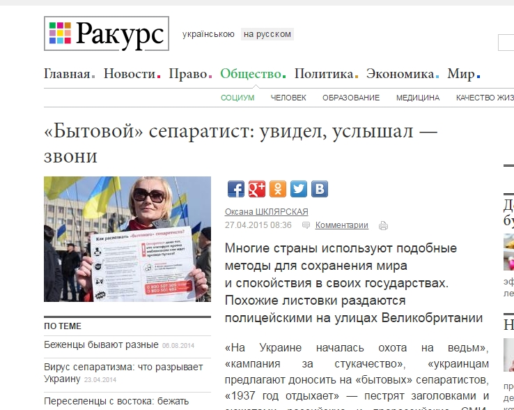 Это тот случай, когда говорят – чья бы корова мычала. Потому как мы можем вспомнить и плакаты «Сдай сепаратиста», развешанные в каждом украинском городе, и детей сдающих родителей в лапы украинских полицаев просто за критику власти полицаев, и уроки «патриотизма» в школах, где детям советуют как правильно стучать на своих родителей и многое-многое другое. Да просто спросим у Гугла…