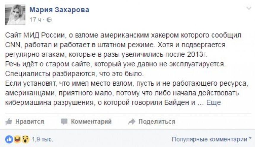 Россияне резко ответили на заявление Захаровой о взломе сайта МИД России