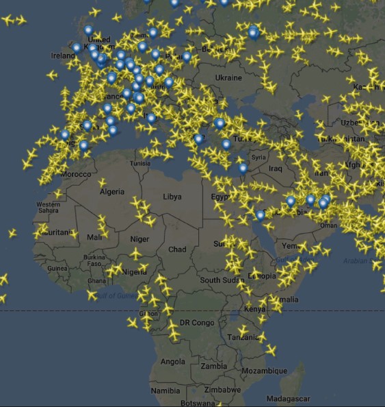 По карте Flight Radar, на которую я посмотрел 11 февраля в 22:43 (UTC)…