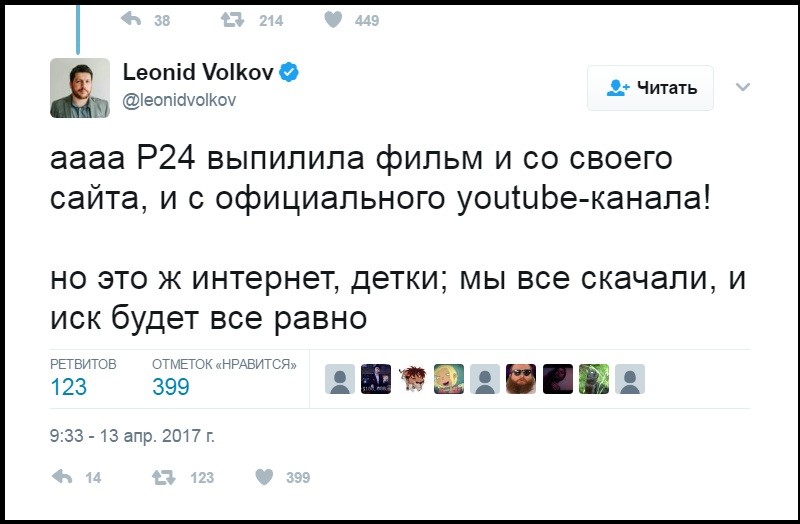 К чему эти импозантные «ААА» в каждом сообщении о фильме про косяки Навального не совсем понятно. Обычно Леонид изъясняется в интернете более официально. Если не учитывать переписку, которую выложили хакеры Феликс конечно. Там Волков себя не сдерживал.