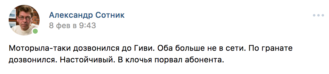 Кстати, к вопросу о неуместных шутках. Вот что сам сотник писал по поводу гибели Ту 154, Моторолы и Гиви. Очень уместно – не находите?