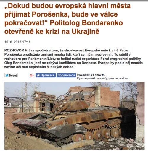 Директор российского «Фонда прогрессивной политики» Олег Бондаренко, изучающий гражданскую войну в Донбассе, скрываемую за аббревиатурой АТО, в интервью чешскому изданию Parlamentní Listy рассказал о своём видении ситуации на Украине.