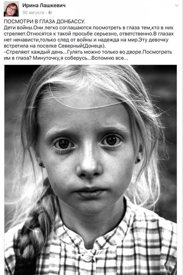 Тем же, у кого повышенный запас жалости давит на слезные железы — обратите внимание на проект Ирины Лашкевич «Посмотри в глаза Донбассу».