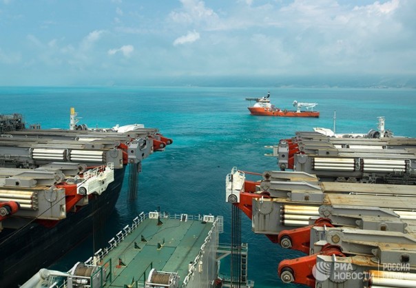 Работы, идущие в рамках прокладки глубоководной части газопровода "Турецкий поток" по дну Черного моря