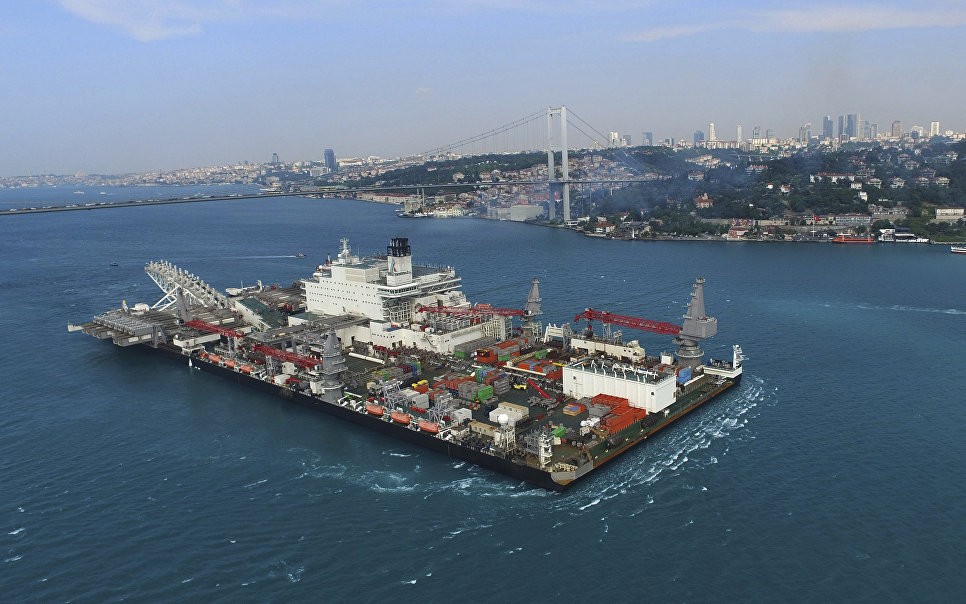 По данным официального оператора проекта, "Pioneering Spirit, крупнейшее в мире трубоукладочное и строительное судно, отметило это событие, уложив в море трубные секции с российским и турецким флагами, символизирующими пересечение границы ИЭЗ между двумя странами".
