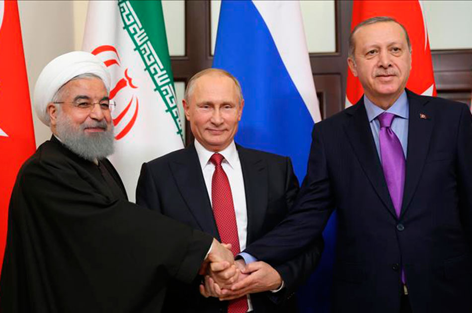 Турция, у которой сегодня проявились давние разногласия с НАТО, США и Евросоюзом, как мне кажется, попутчик пока временный. Запад всегда держал ее на расстоянии, и теперь до Анкары стало доходить, что в дружную семью европейских народов ее никогда не возьмут. А арабы с персами не доверяют еще со времен Османской империи. Турки сейчас в поисках точки опоры, собственной идентичности. Скорее всего, Эрдоган участвует в триумвирате, чтобы подложить пилюлю свои партнерам по военному блоку, а этот мотив изменчив.
