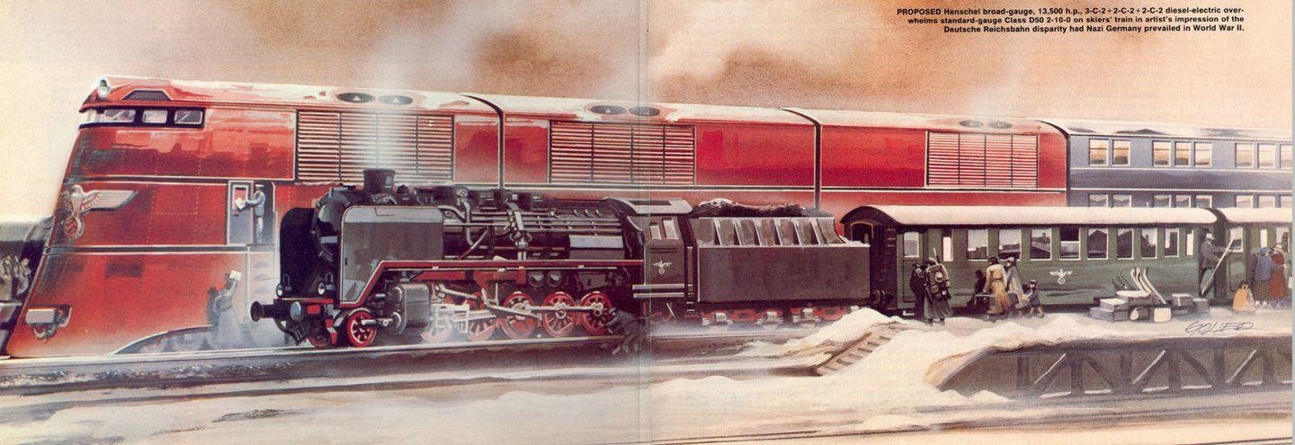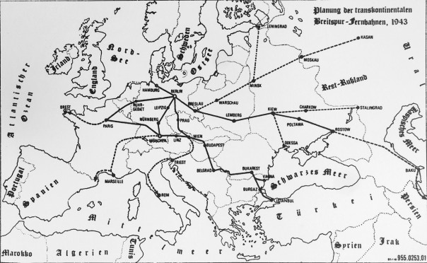 Через Гамбург, Берлин, Мюнхен, Линц, Вену и Нюрнберг планировалось протянуть железные дороги с вдвое большей шириной колеи, по которым со скоростью 200−250 км/ч должны были помчаться гигантские поезда. Париж, Рим, Триест, вся Европа, затем на восток — Прага, Стамбул, Минск, Москва. Затем еще дальше — Каспийское море, Урал.