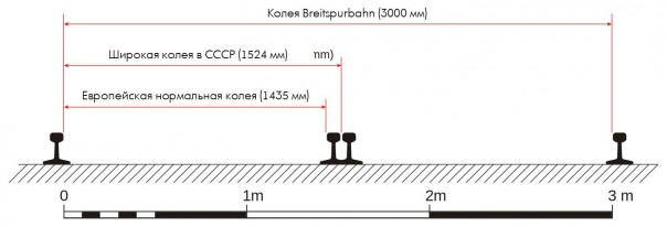 Заместитель директора института комплексных транспортных проблем АН СССР, Советский ученый Василий Звонков в частности, писал: «Существующая общепринятая в нашей стране ширина железнодорожной колеи — 1524 миллиметра — была предложена одним из строителей дороги Петербург — Москва инженером Мельниковым. Уже сегодня она нас удовлетворить не может. Ширина колеи в 3 — 5 метров позволит нам строить значительно более грузоподъемные вагоны и использовать локомотивы мощностью в 40 — 50 тысяч лошадиных сил, чтобы обеспечивать скорость движения в 250 — 350 километров в час. Значительно облегчится вопрос об использовании на таких локомотивах атомных реакторов. Ведь, как известно, только значительный вес биологической защиты препятствует тому, чтобы уже сегодня на наши дороги вышли атомные локомотивы, хотя удовлетворительные проекты таких локомотивов имеются в разных странах…».