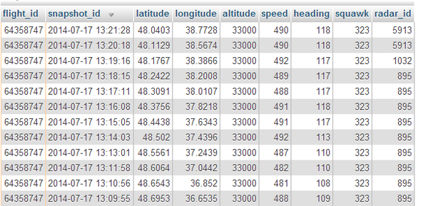Последние позиции # MH17 непосредственно из базы данных Flightradar24: Последний сигнал был получен в 13:21:28 ..."малазийский авиалайнер исчез с экранов радаров примерно в 17:20 по московскому времени" - так написали в наших СМИ.