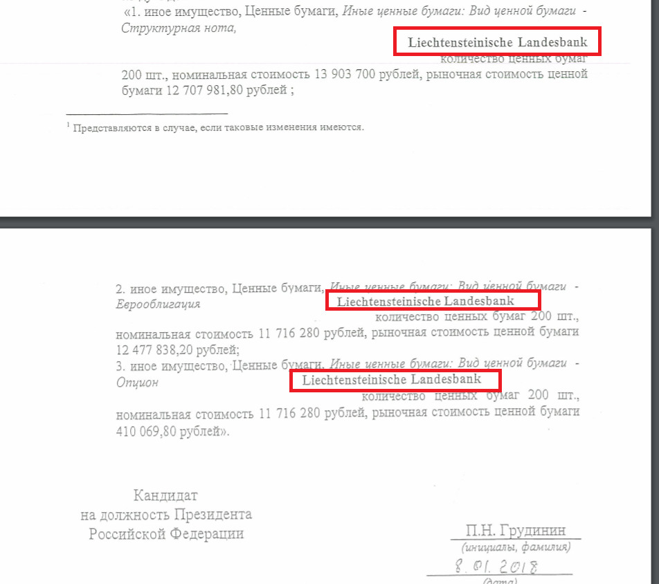 А на 2:30 начинает идиотски оправдываться, что "вывсёврёти, у Грудинина нет миллиардов" (про офшорный банк как-то "забыл"). Якобы это не 200 бумаг по 11 миллионов, а всего 11 миллионов. Но смотрим на скан...