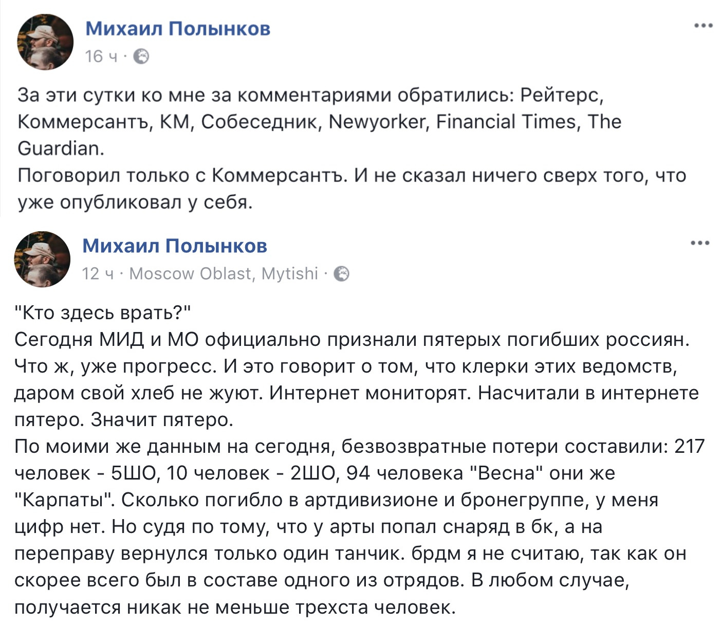 Вишенка на торте: пригласила в прямой эфир на News Front основной источник распространения информации. Который первым написал про посещение госпиталя и подтвердил заявленную 10 февраля «реконструктором» цифру в 600 человек.
