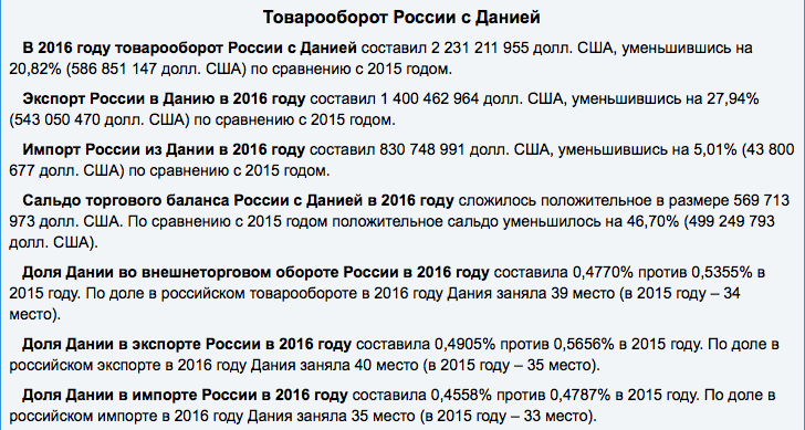 И вот в этой ситуации ухудшение внешнеэкономических показателей – это весьма чувствительная история. Конечно, Дания всё это учитывает и есть некая обида на русских, которая в конце концов и вылилась в закон о выгоде заключаемых соглашений.