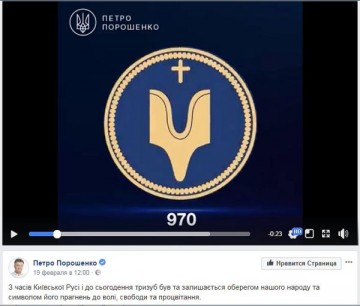 В честь 26-летия принятия трезубца в качестве «малого герба Украины» Порошенко заявил: «Со времён Киевской Руси и до наших дней трезуб был и остаётся оберегом нашего народа и символом его стремлений к свободе, свободы и процветания».