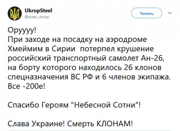 — что «на борту были мёртвые бойцы из ЧВК Вагнера, которых месяц не знали, как утилизировать» (и плевать, что наших добровольцев погибло 14 человек — об этом сообщил один из руководителей «вагнеровцев» Андрей Трошев, а не «600-900» минстецевско-полынковских, и что борт В Хмеймим, а не ИЗ него — укропы всё равно не могут в логику);